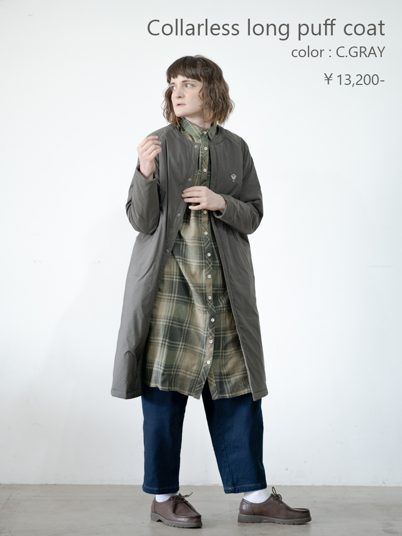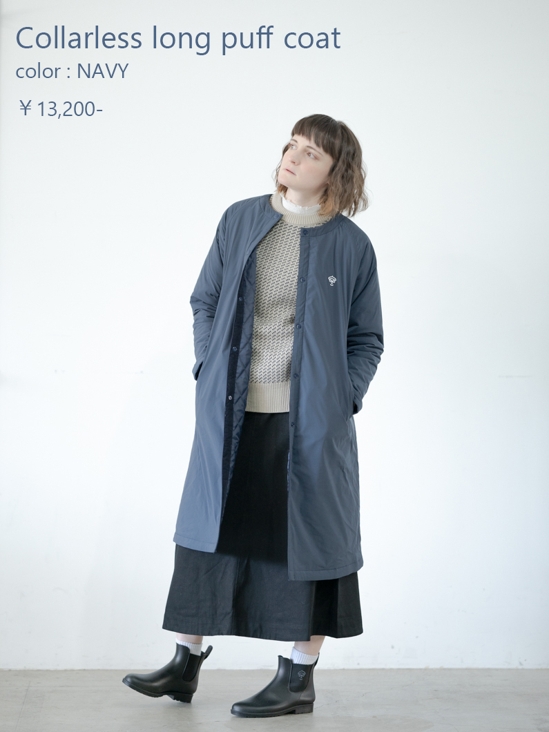 Collarless long puff coat
