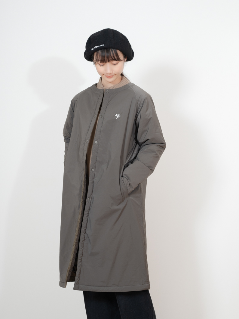 Collarless long puff coat