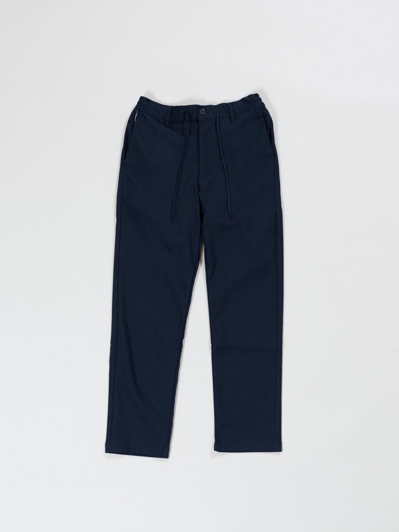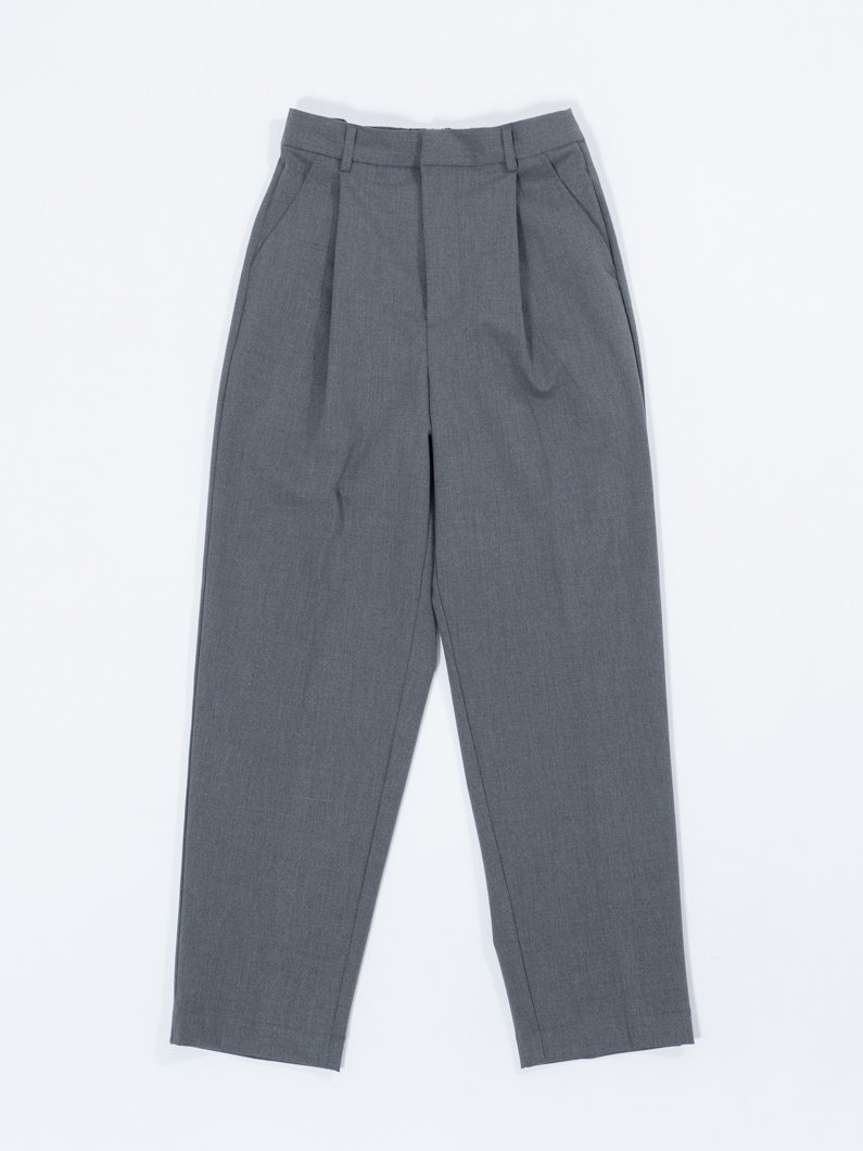ボトムスのタックパンツは足首にかけて細くなるテーパードの効いていて、前から見ても横から見ても脚がきれいに見えるデザイン。