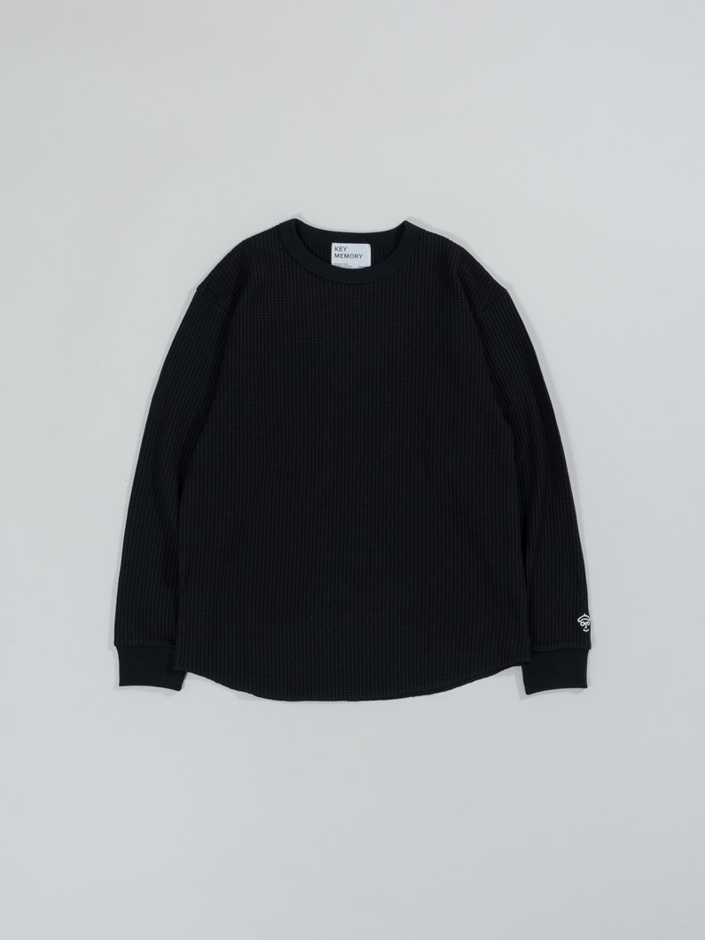 トップスのワッフルロングシャツは、ぽこぽことしたワッフルのような柔らかくシワになりにくい生地を使用した使い勝手のいいアイテム。