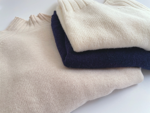 特に、カシミヤニットのような保温性の高いアイテムをチョイスすると、着膨れせずにすっきりとしたコーディネートが完成するのでおすすめです。