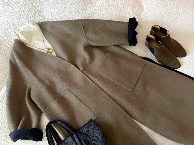 最後に、12月の鎌倉観光におすすめの冬物レディースコート&アウターの着こなしのうち、ワンピースを使ったものを見ていきましょう。